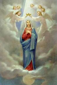Salaisuudet ovat seuraavat 5): Neitsyt Maria kruunataan taivaassa. (Ilm. 12:1)